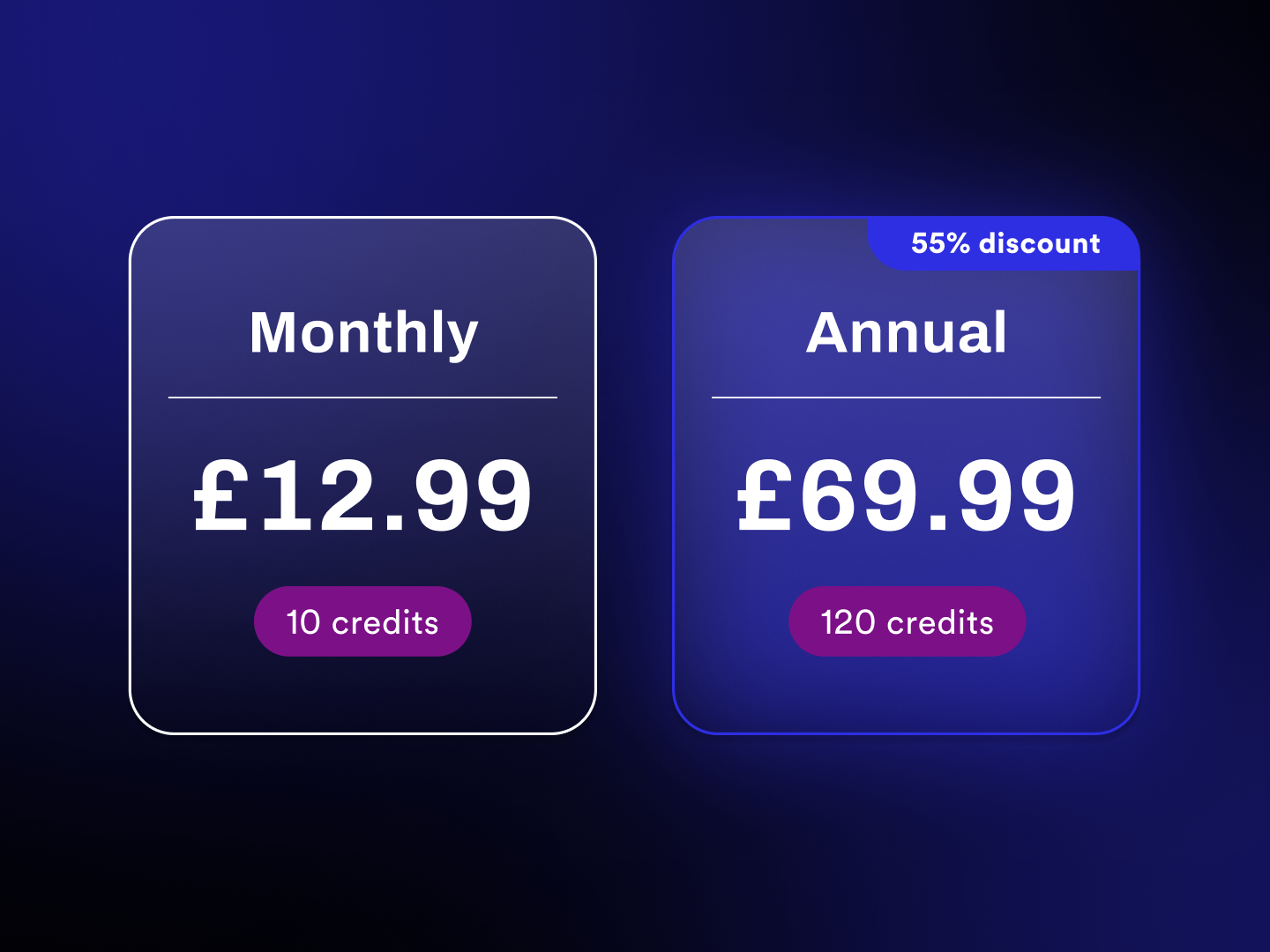 - Annual Membership: We’ve dropped the price from £99.99 to £69.99. It now includes 120 credits (worth £72). You’re essentially getting the membership for free and saving a couple of quid on credits from day zero.